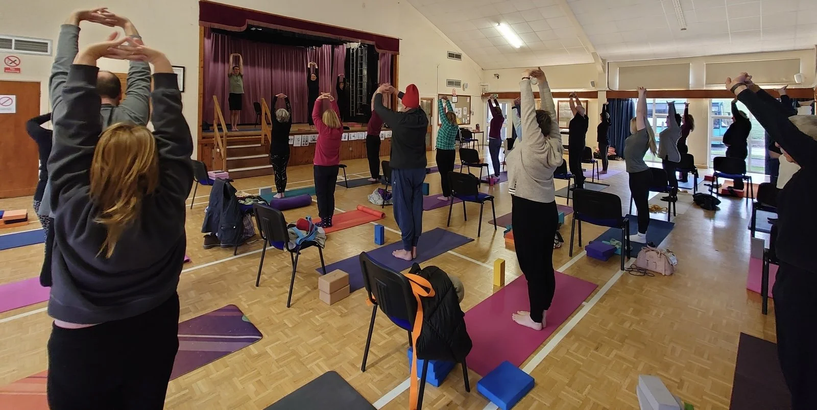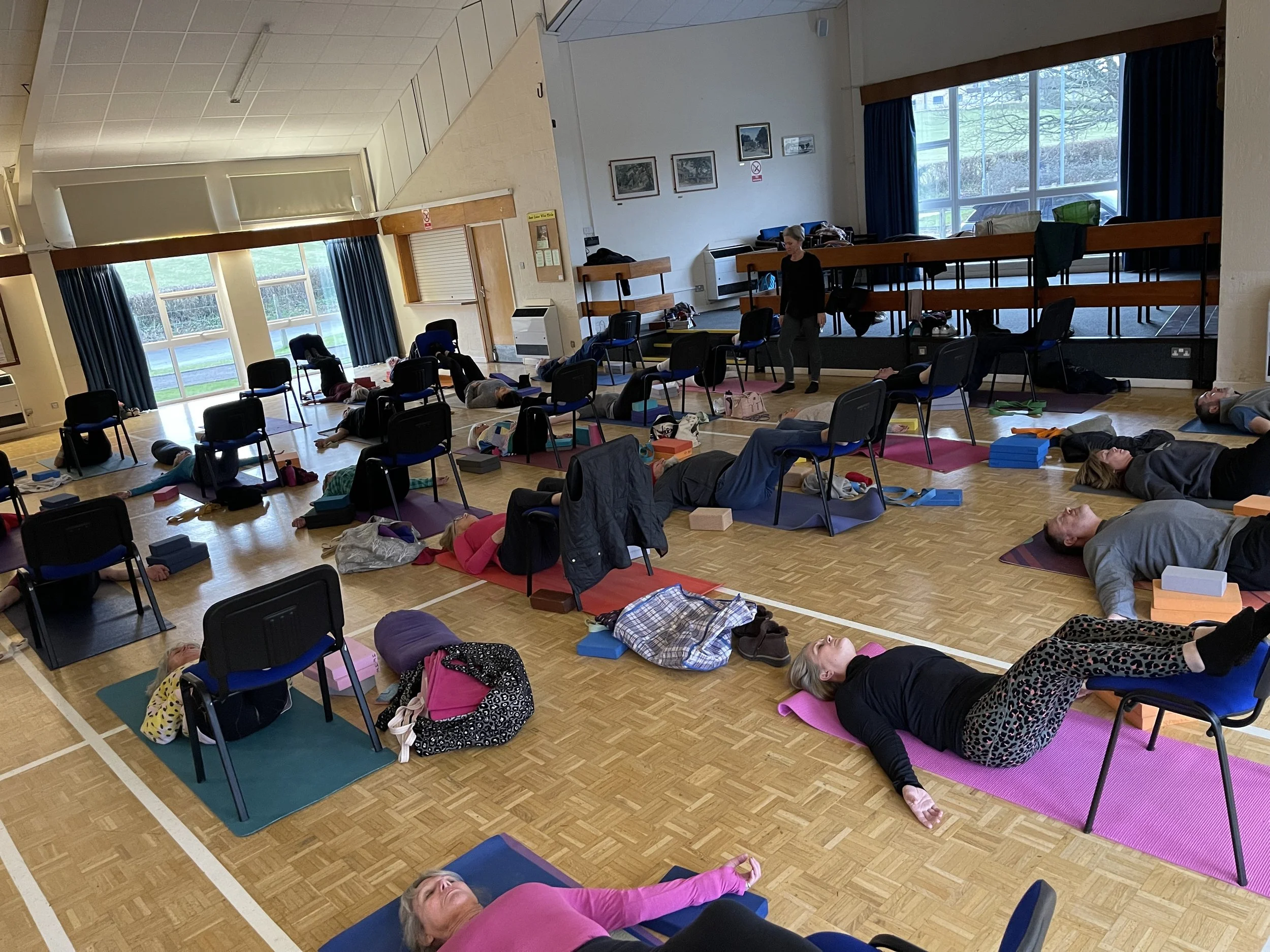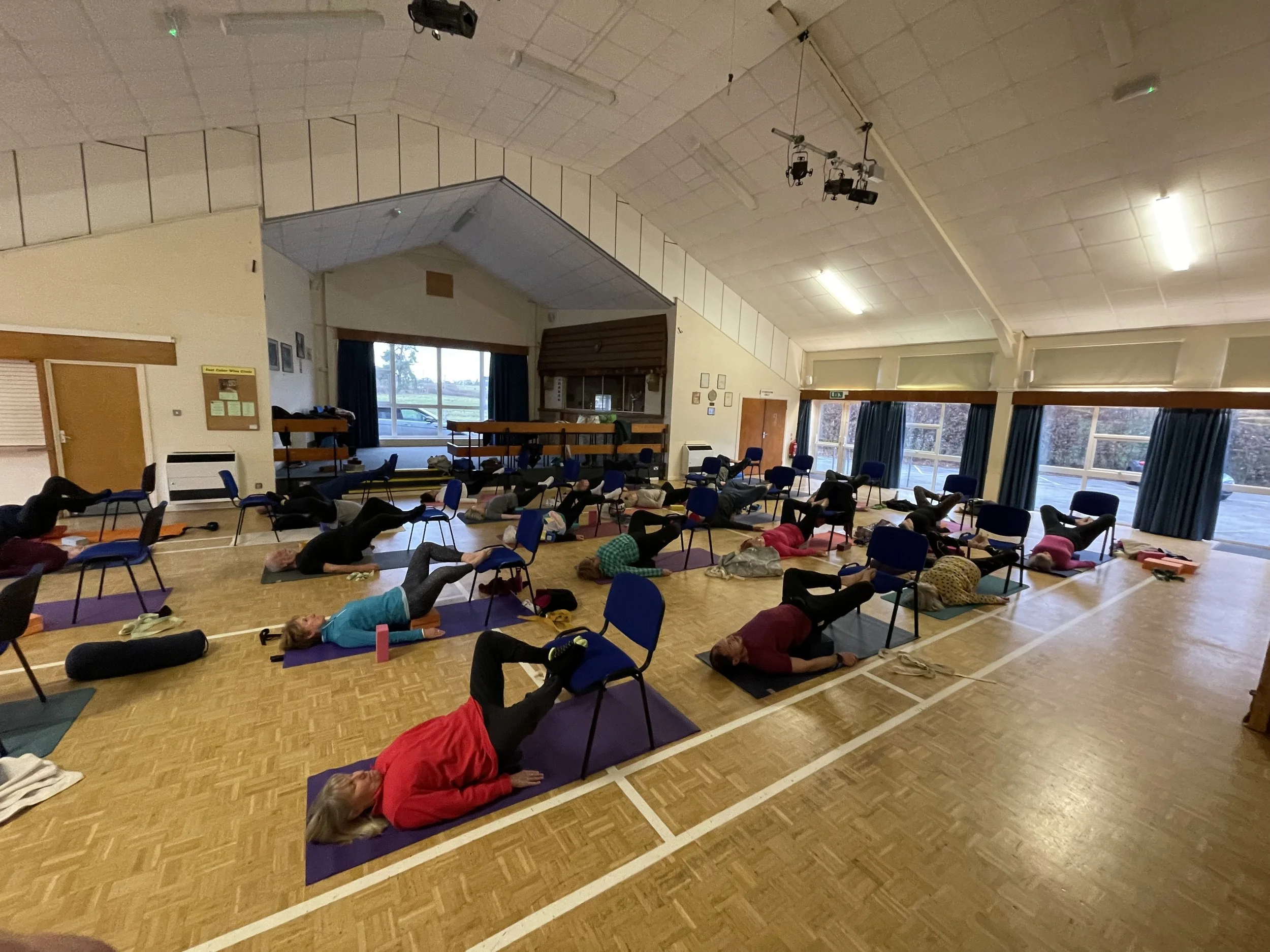 On 20th January we celebrated National Iyengar Yoga Day 2024. Twenty six of us gathered together for a ‘taster class’ where a mixture of complete beginners and experienced students enjoyed a lovely afternoon of yoga together. Here are some pictures from the event and a video of the demonstration given by myself, Elaine and Tom. A lovely afternoon sharing the joy of yoga.