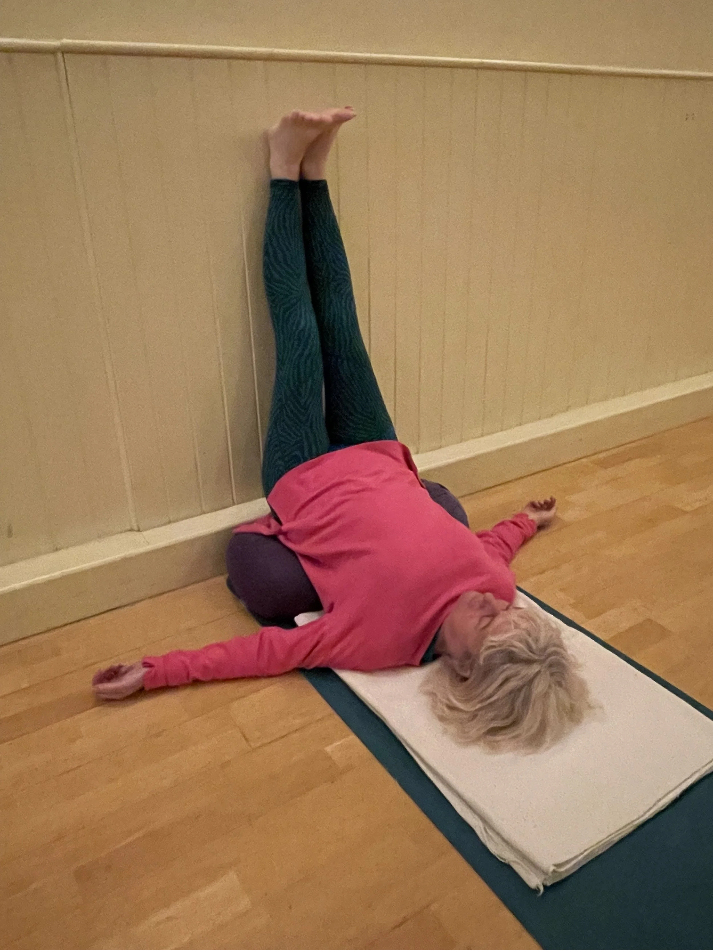Viparita Karani on the bolster - Jackie’s favourite prop