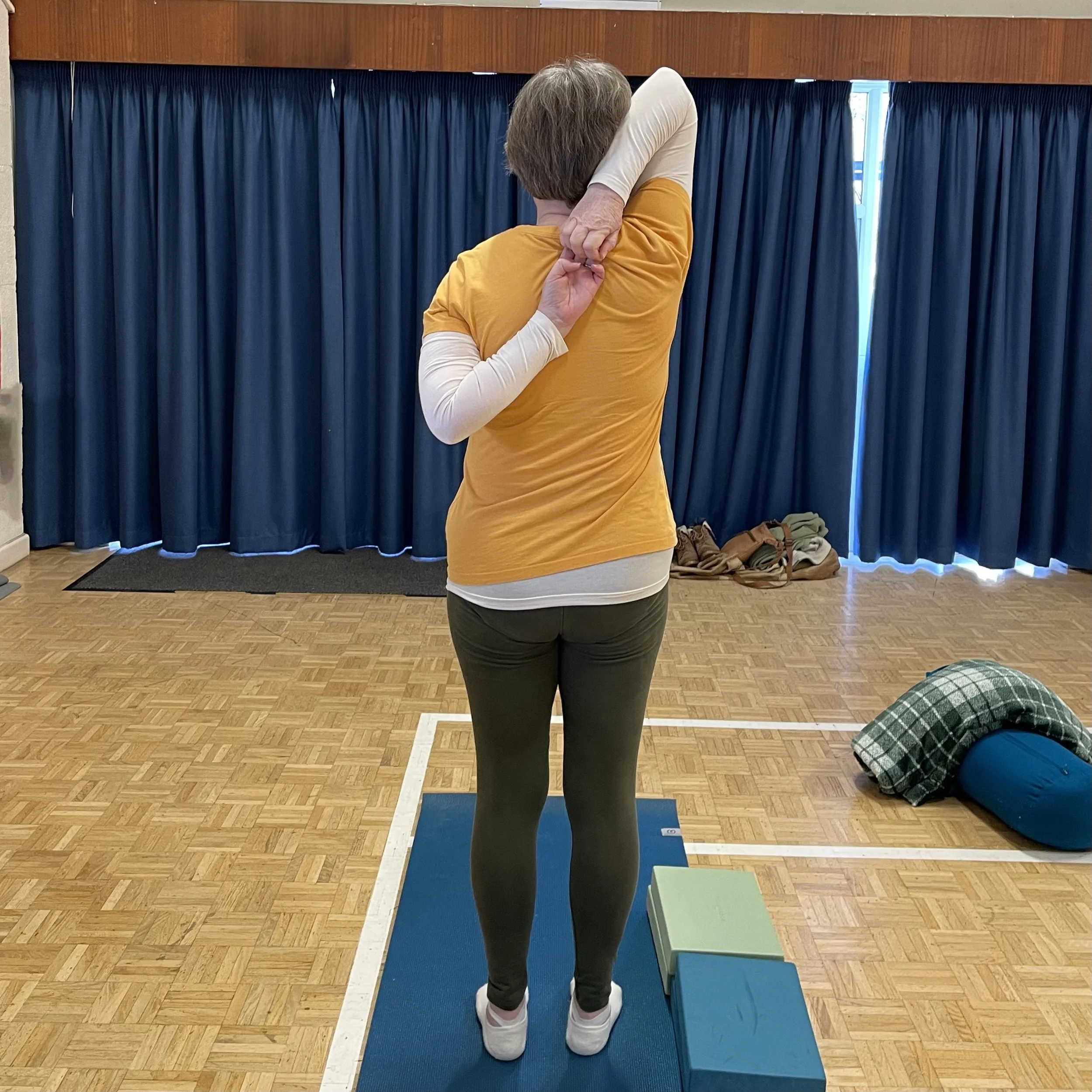 Karen attends two classes a week and is committed to her practice. In the relatively short time I’ve had the pleasure to teach her it has been wonderful to watch her postures develop. She approaches each asana with focus, self awareness and a healthy balance of courage and caution. Karen has built her confidence to such an extent that she now practices headstand and shoulderstand and is happy to give anything a try, which is testament to her consistent attendance at classes. Well done Karen and a special thank you for all your help getting the hall ready before the class starts!