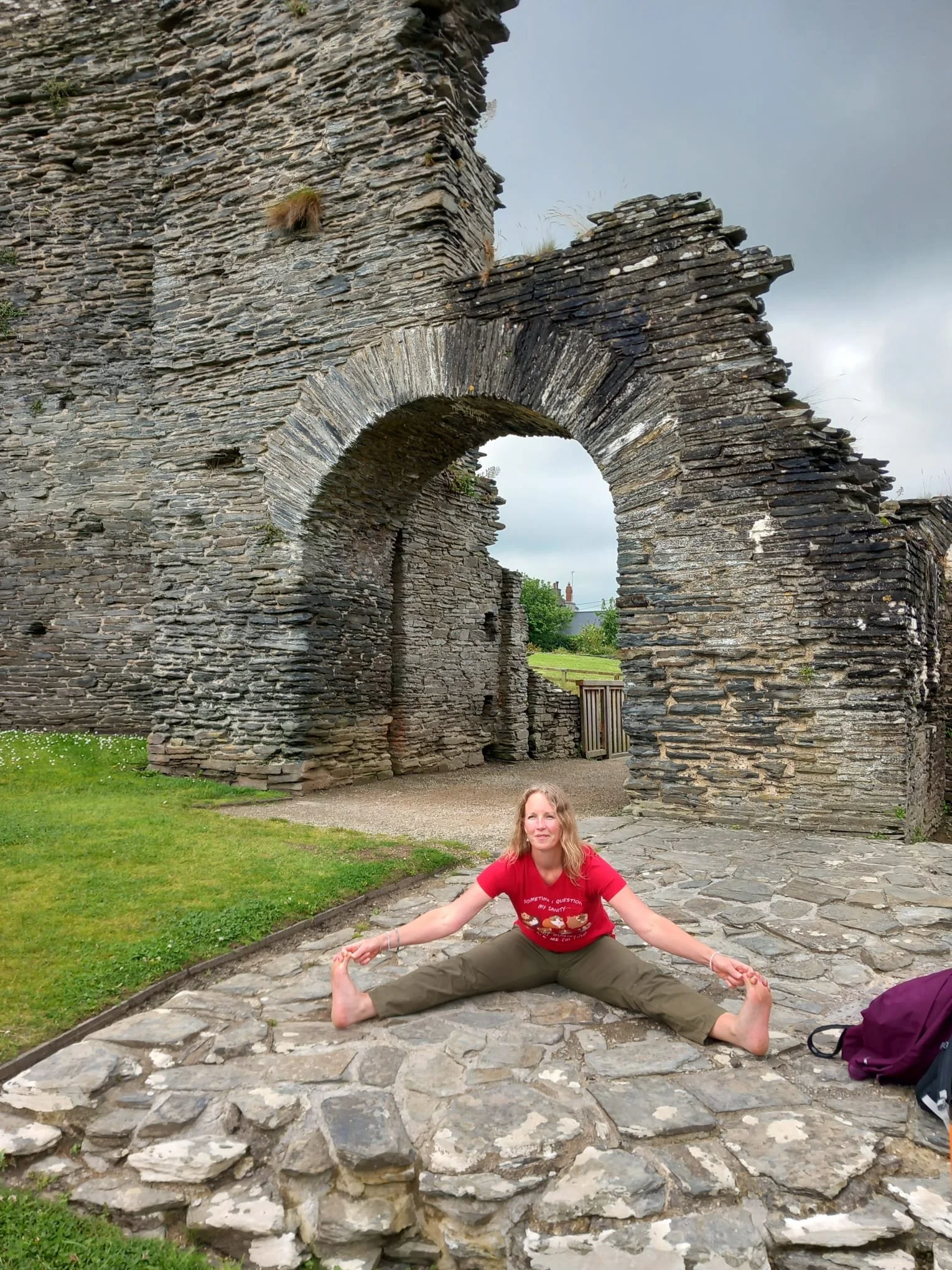 I hope you will enjoy my new feature, βStudent of the Monthβ, where you can find out about how Iyengar Yoga fits into the lives of all sorts of people that attend classes. First up is Claire, (also known as Queen of the Crash Helmet - but that's another storyπ€£) who is a very dedicated and determined student, full of enthusiasm with a brilliant sense of humour. She is a great friend to everyone, rarely missing a class and when she does always manages a bit of practice wherever she is - as you can see from the photos!