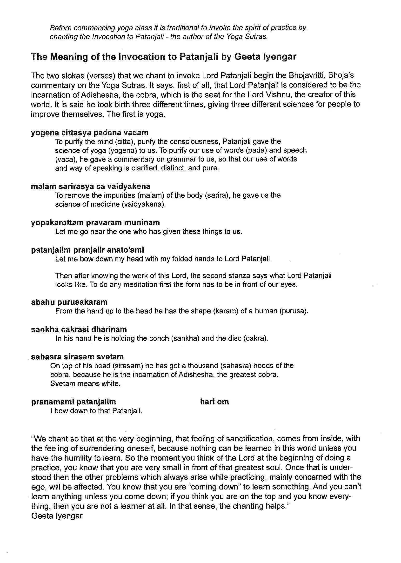 Yoga Kit List Latest News Recommended Reading The Invocation to Sage Patañjāli recited by BKS Iyengar Useful Links:The Iyengar Yoga Association of the UK The Ramamani Iyengar Memorial Yoga Instutue - the home of Iyengar yoga in Pune, IndiaThe Official Website of BKS Iyengar